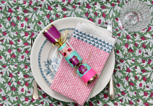 Tovaglia stampata a mano - modello Wakame verde - dim. 160 x 270 cm