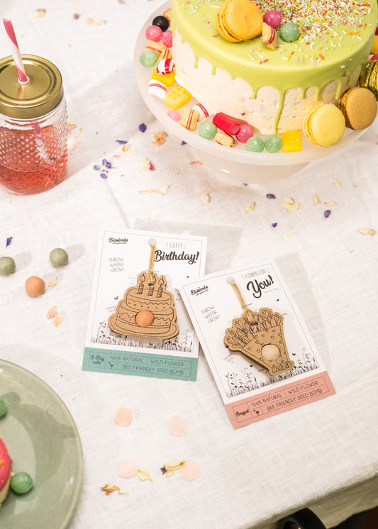 Ciondolo Torta di Compleanno su Cartoncino - Buon Compleanno - 1 bomba di semi