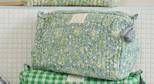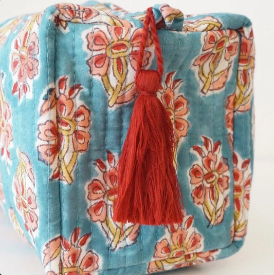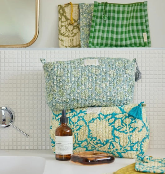Beauty case in cotone stampato - INDI Meera Blue Green