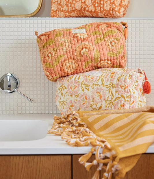 Beauty case in cotone stampato - INDI Poppies Blue Green