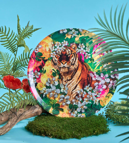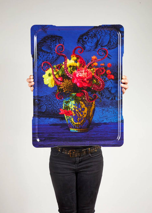 Vassoio Aperol fantasia con fiori in metallo smaltato - modello Iris Curry - dim. 30,5 x 21,2 cm