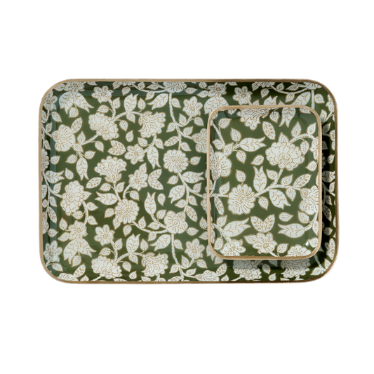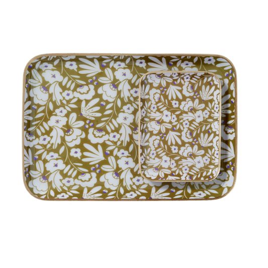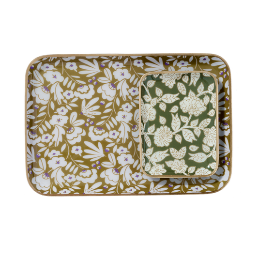 Vassoio Aperol fantasia con fiori in metallo smaltato - modello Jaya Vert - dim. 30,5 x 21,2 cm