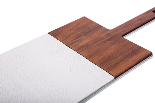 IN-TAGLIO 2 - Tagliere/Centrotavola in ceramica e legno 18 x 79 cm - colore Bianco/Legno - KnIndustrie