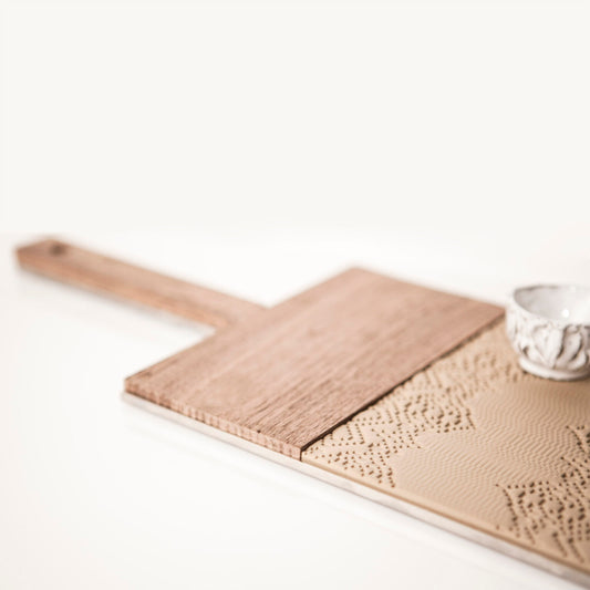 IN-TAGLIO 2 - Tagliere/Centrotavola in ceramica e legno 18 x 79 cm - colore Beige/Legno - KnIndustrie