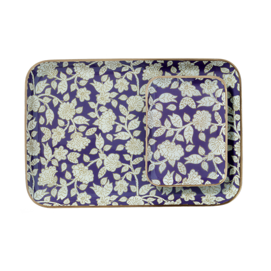 Vassoio Aperol con fiori in metallo smaltato - modello Jaya Viola - dim. 30,5 x 21,2 cm