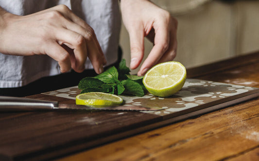 IN/TAGLIO 1 - Tagliere/Centrotavola in ceramica e legno 20 x 52 cm azzurro - KnIndustrie