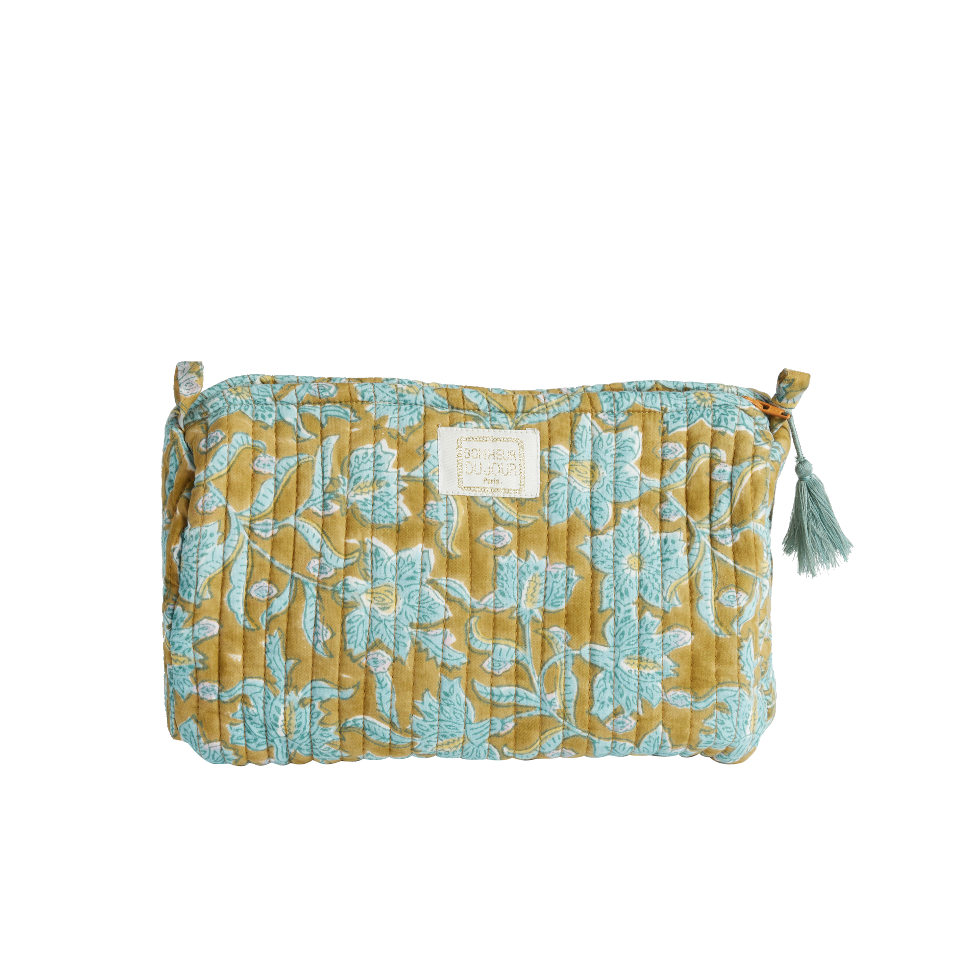 Realizzato in morbido cotone trapuntato, presenta una delicata stampa floreale dai colori luminosi che infondono allegria e freschezza ad ogni sguardo. Le cuciture verticali ne esaltano la texture soffice, mentre la nappina realizzata a mano aggiunge un tocco di autenticità e calore. L’apertura con zip rivela un interno pratico e spazioso, perfetto per custodire con stile i tuoi essenziali di viaggio o di ogni giorno. Un piccolo accessorio che unisce bellezza, funzionalità e poesia tessile.
