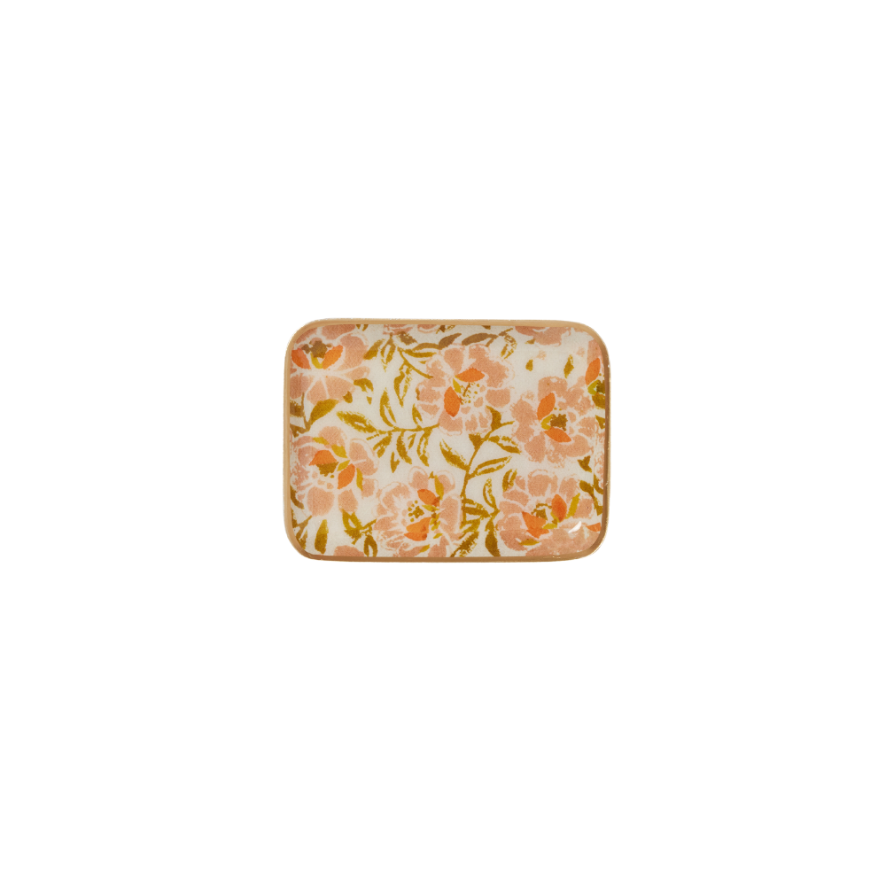 Vassoio bohémien chic a fiori in metallo smaltato.